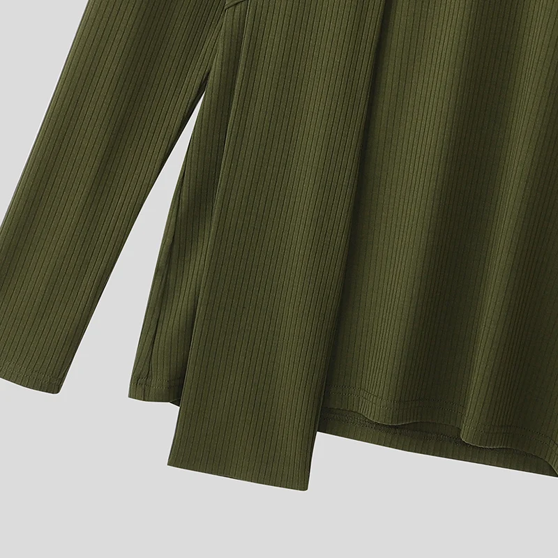 The deep teal tone is rich and versatile, the slim fit hugs in all the right places, and the fine rib knit adds just enough texture to make it stand out. This is the piece people ask about.